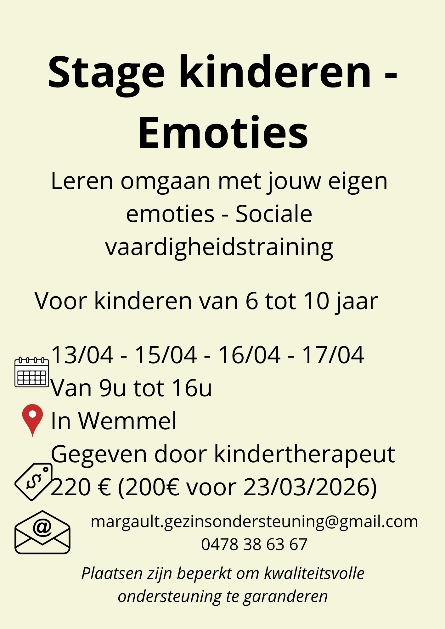 Ik organiseer een kleine stage (maximaal 8 kinderen) om kinderen van 6 tot 10 jaar te helpen: